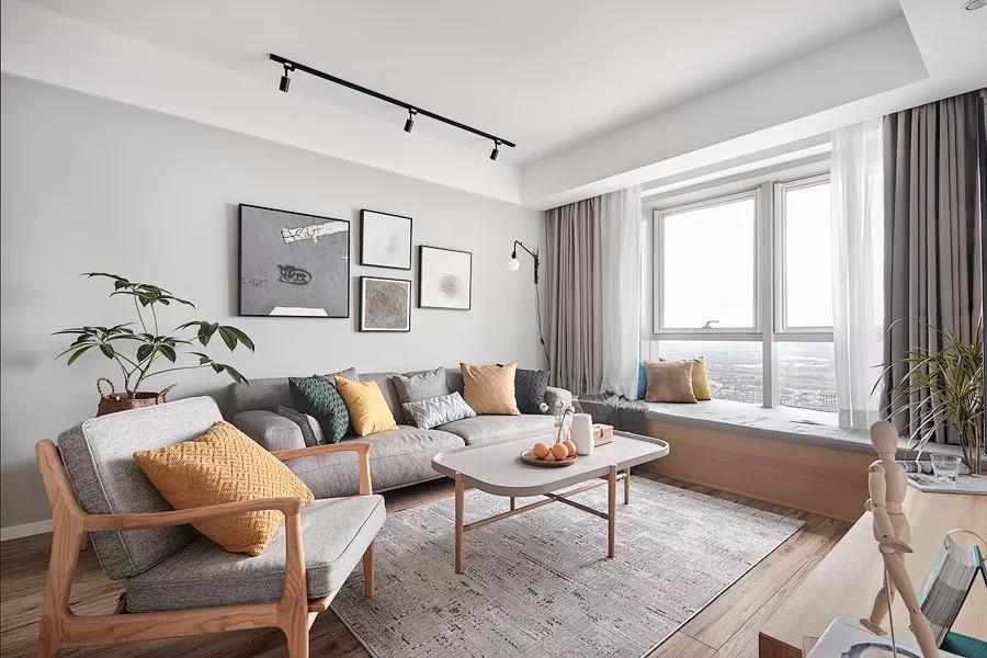 有2個臥室,還有1個小書房,布局真的很不錯。整個家大量搭配了原木家具,清新又自然,文藝又有格調,好喜歡這種休閑又放松的家居氛圍。很多人問我客廳刷什么顏色的乳膠漆好,我覺得淺灰色不錯,客廳采光特別的給力,好喜歡休閑飄窗的設計,視野十分開闊,看書休憩都特別的舒服。淺灰色調不會顯得過于沉穩,在布藝中加些暖色,會更顯休閑溫馨感。軟裝搭配細節放大看一看,哈哈,質感真的不錯,黃色抱枕真的超愛了!搭配個小邊幾,擺上綠植,清新又養眼,裝修的時候墻面別忘了預留插頭,平時充電會更方便些.主臥的采光也特別棒,整個空間氛圍清新又自然。很喜歡床頭木質護墻板的設計,和臥床、床頭柜融為一體,十分的協調。廚房雖然面積不大,但也打造出U型布局,動線合理,操作方便。很喜歡這種時尚中融入清新色調的搭配了。冰箱也有了歸屬感!